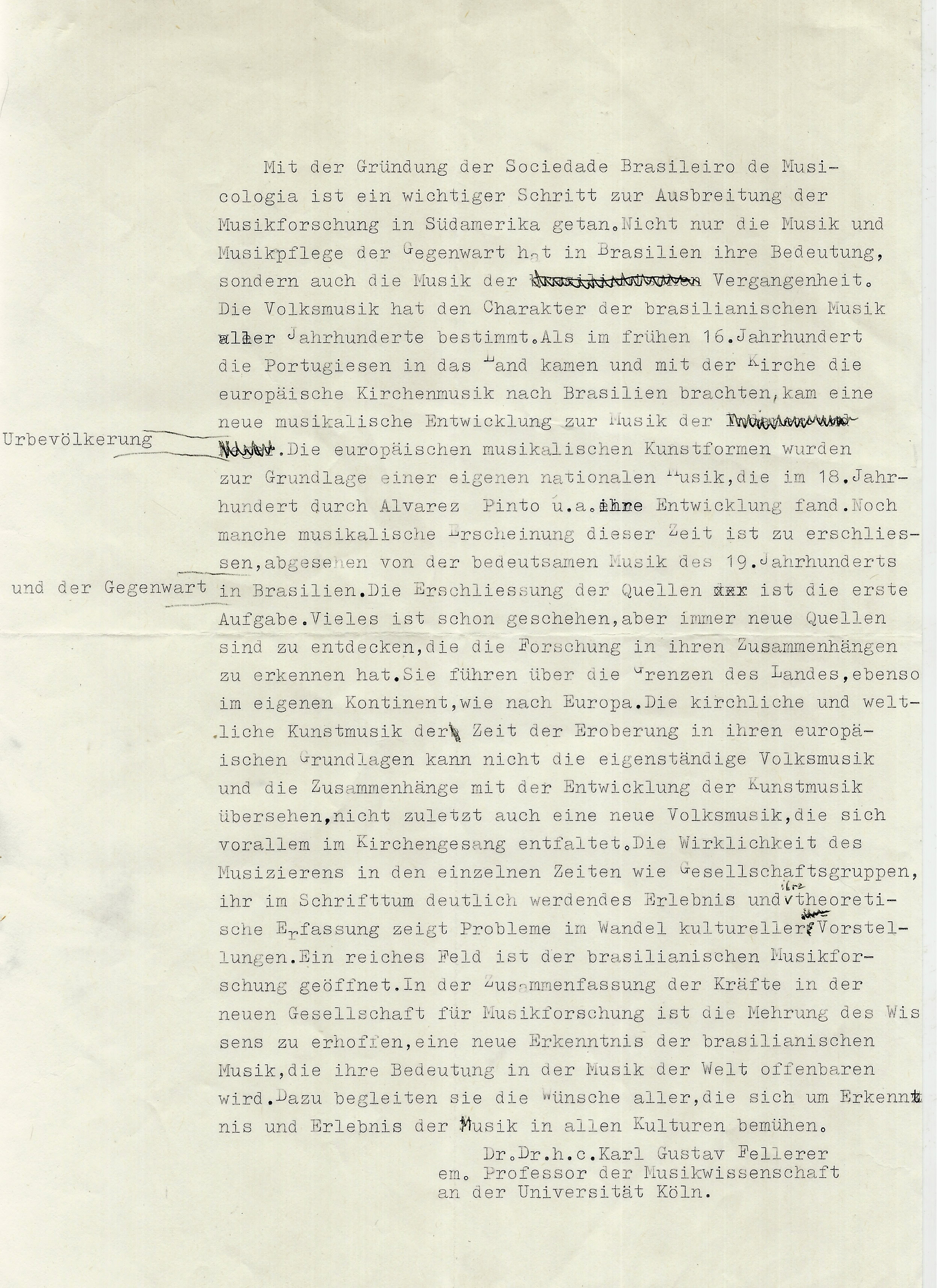 Die Verwirklichung des langgehegten Ideals der Vereinigung der Musikforscher Brasiliens